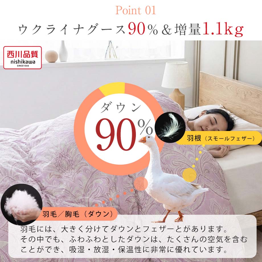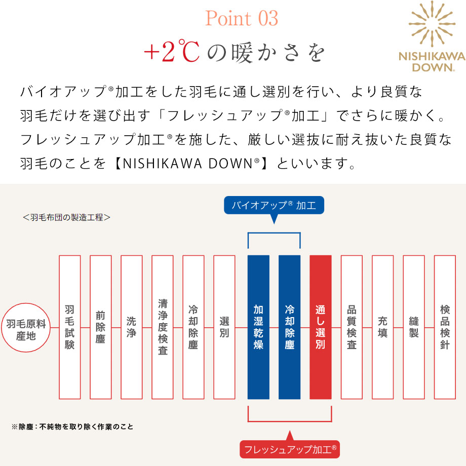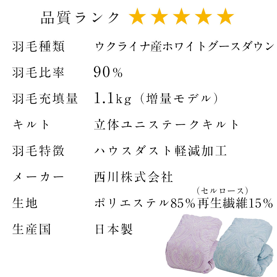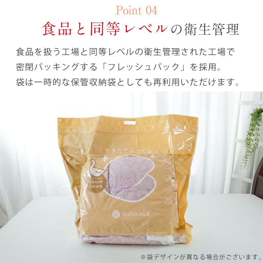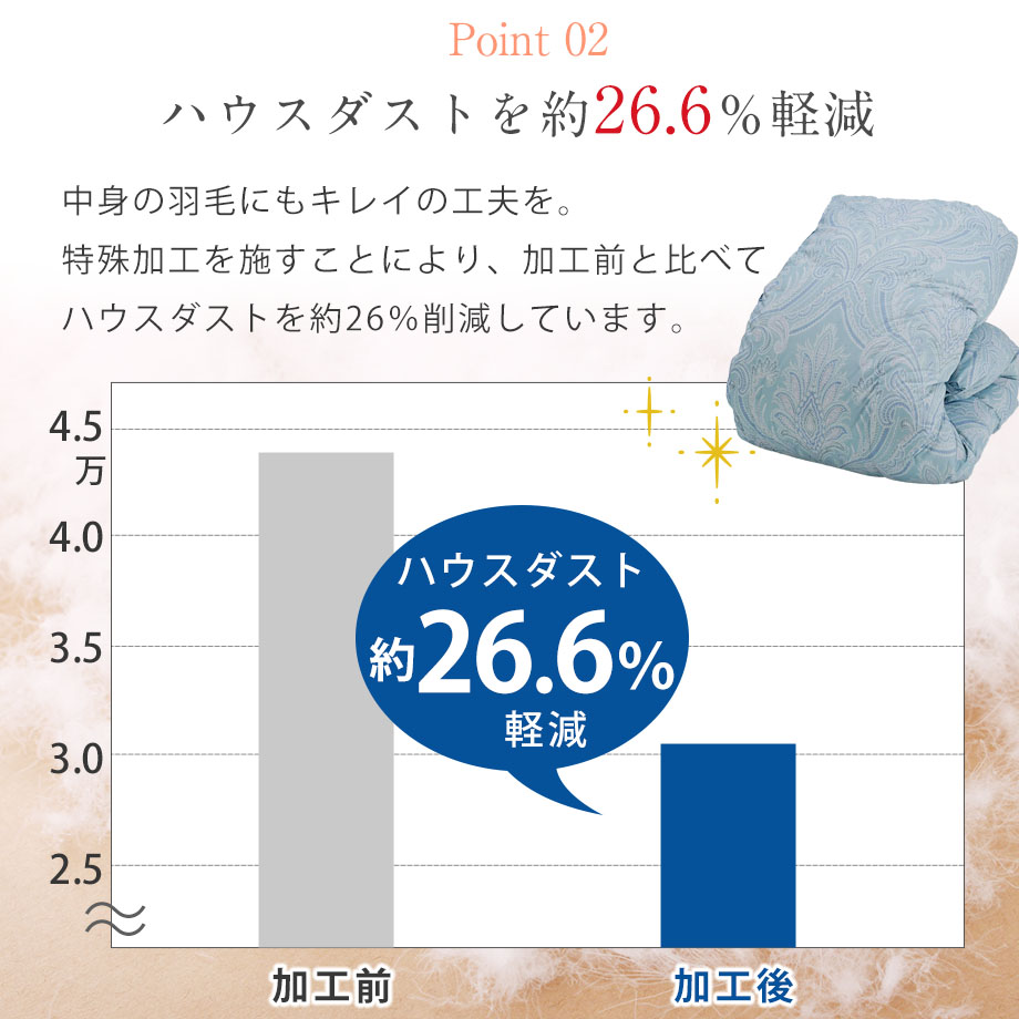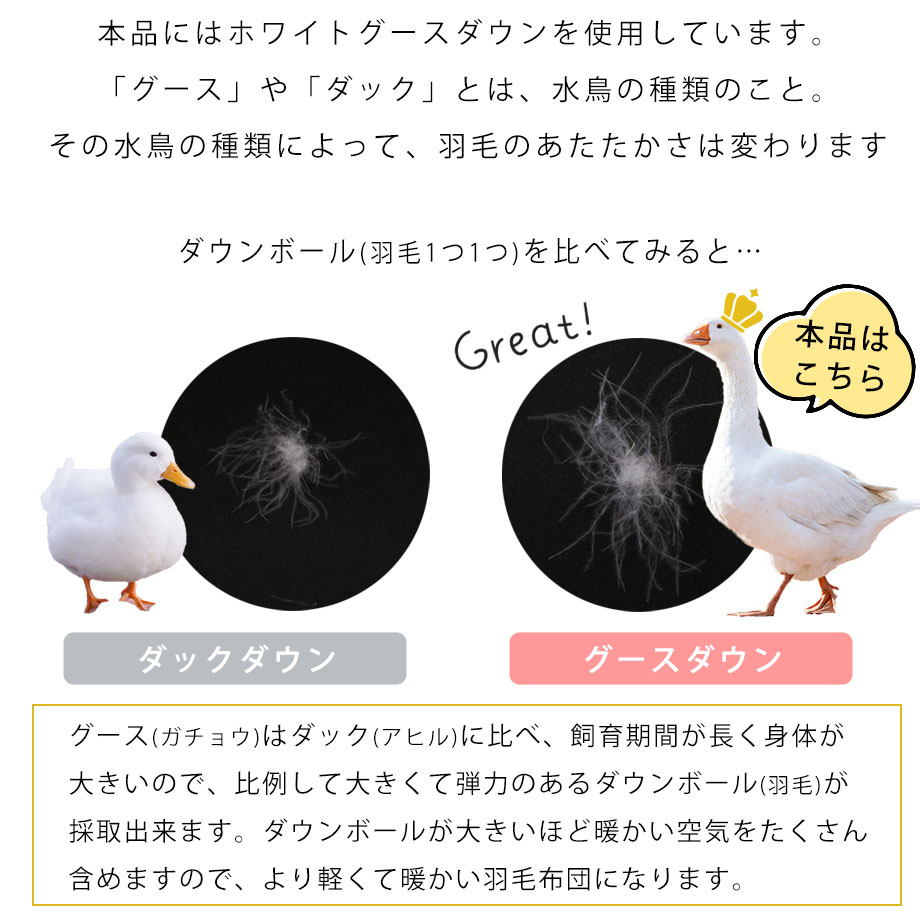 ※羽毛は天然素材のため特有のにおいがあります。使いはじめや気温・湿度が高い時はにおいを感じる場合がございます。