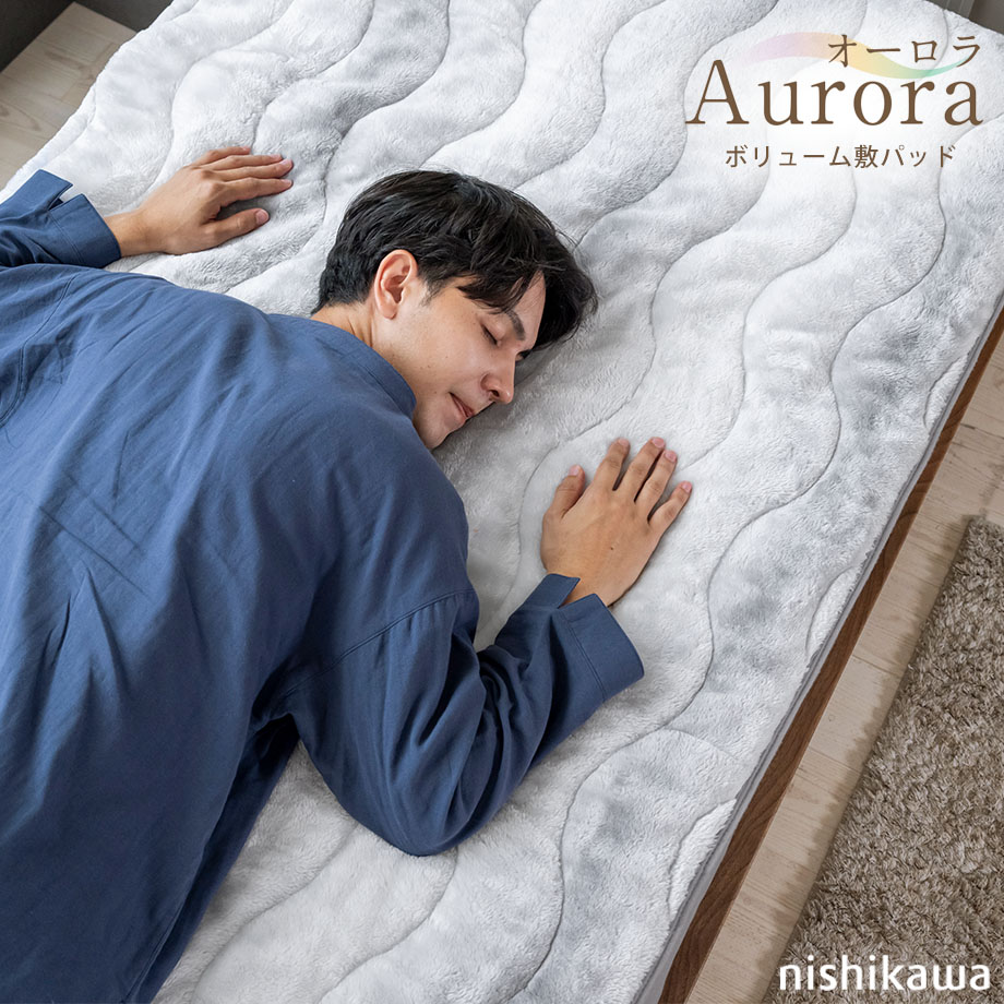 ふんわり敷きパッド シングル 厚手 オーロラ柄