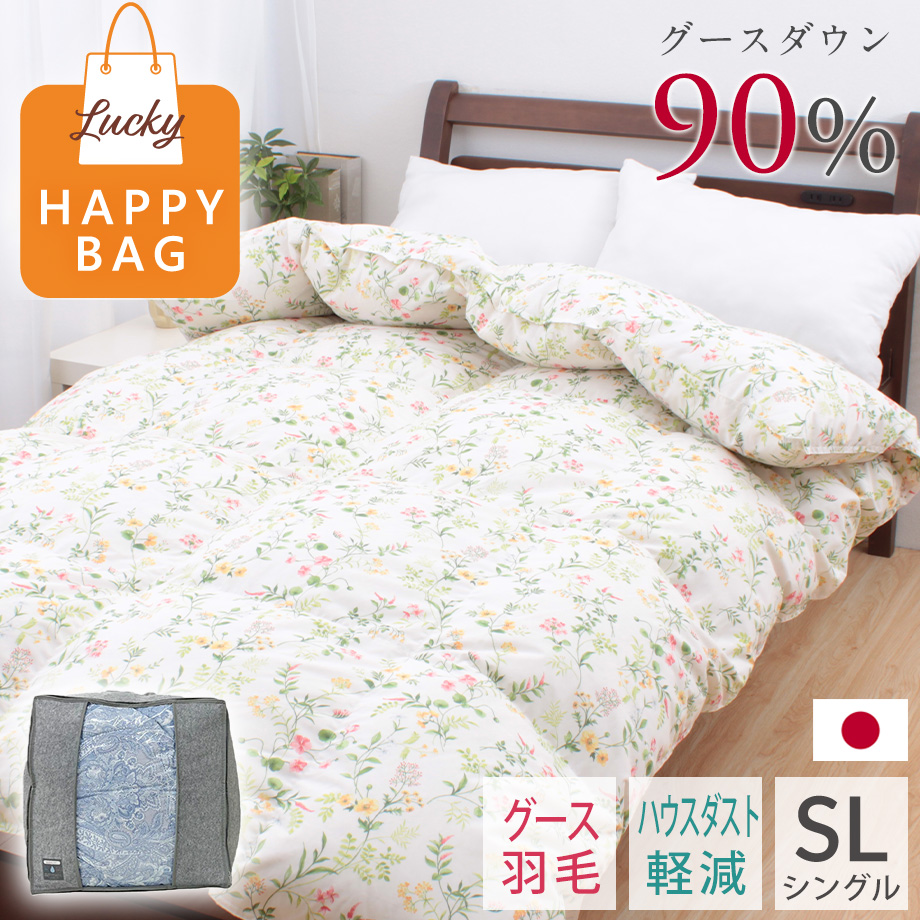 福袋 羽毛布団 エコグース90% シングル 収納袋セット