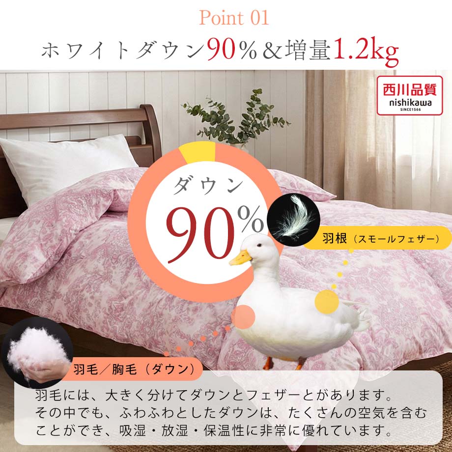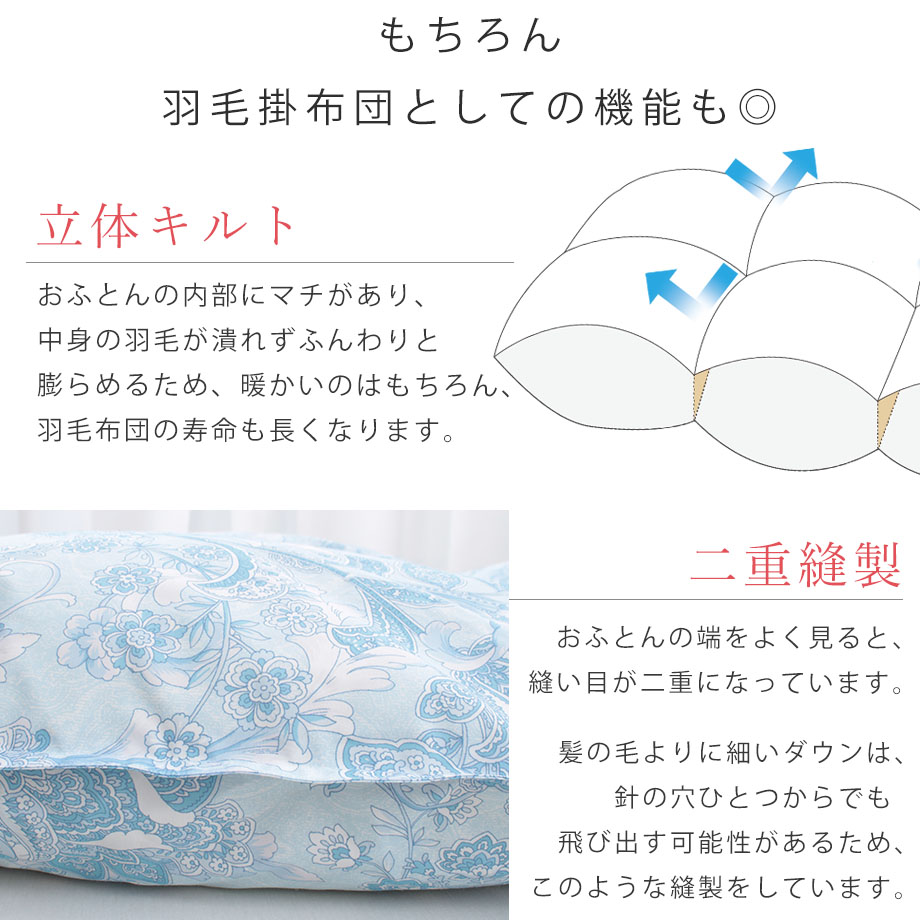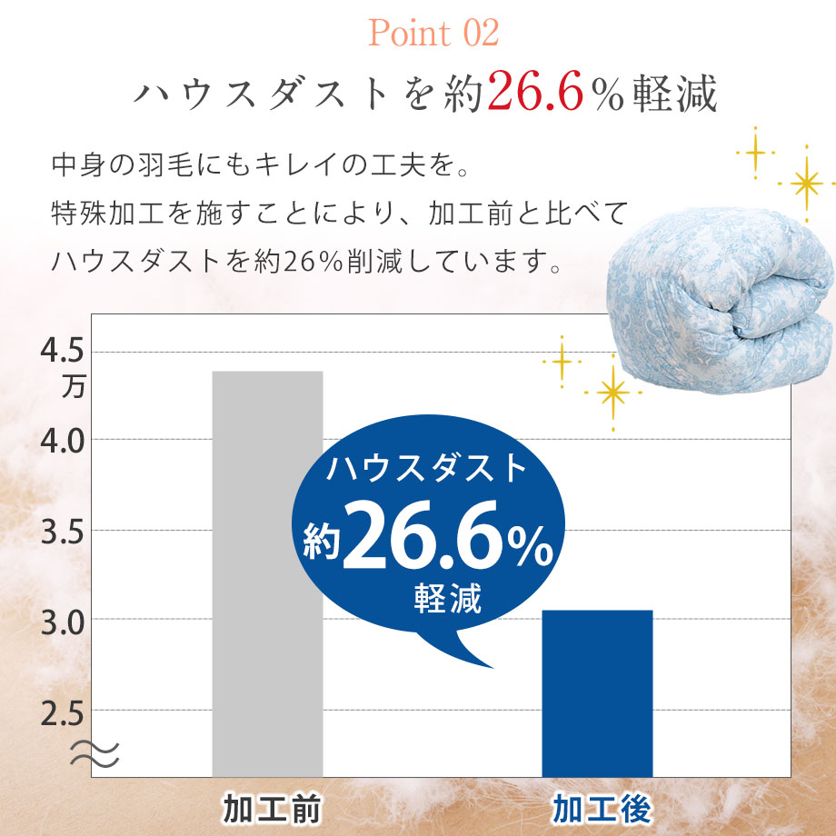 商品仕様/ ハウスダスト軽減(バイオアップ(R)加工により)、二重縫製、ズレ防止ループ8ヶ所あり