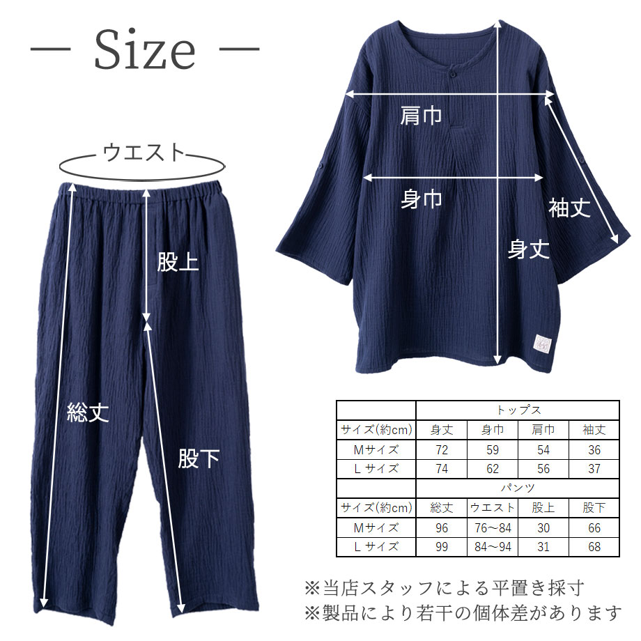 | 身丈 | 身巾 | 肩巾 | 袖丈 | 総丈 | ウエスト | 股上 | 股下 | ||