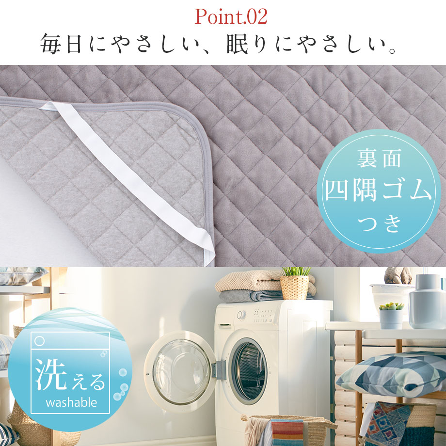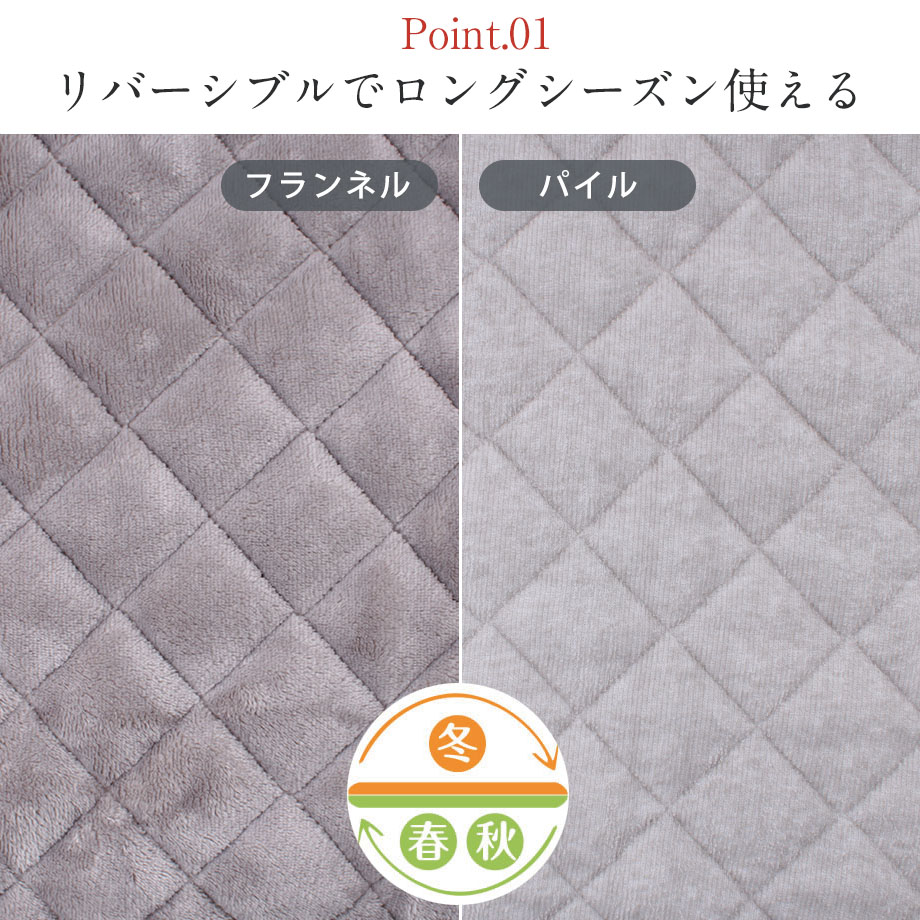 商品仕様/ リバーシブルタイプ(両面使い分け可能)、四隅ゴム付き、取り扱い表示に従い洗濯可能
