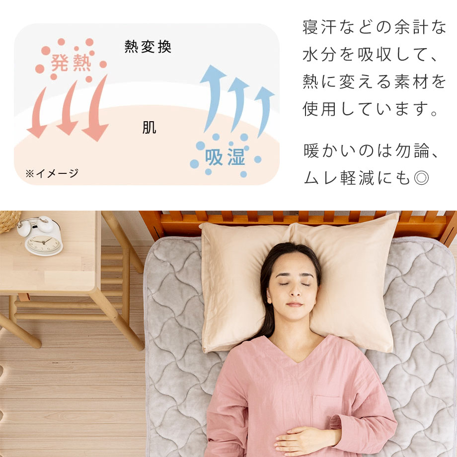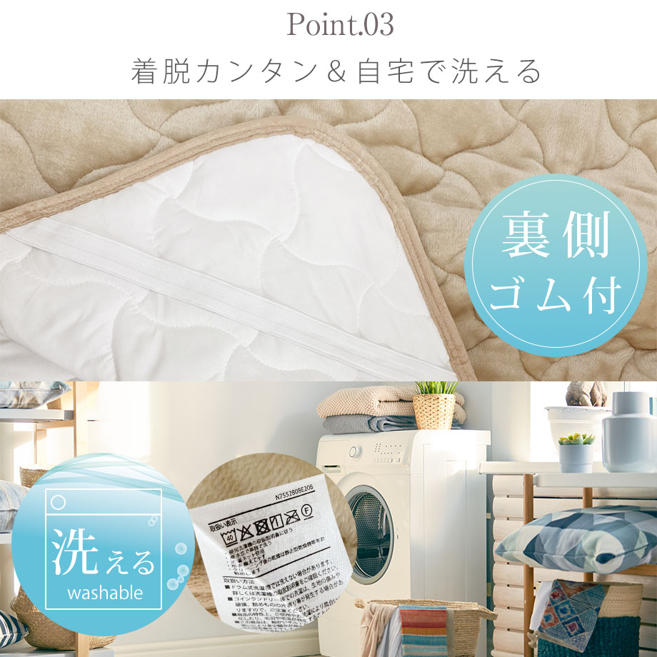 商品仕様/ 足ポケット仕様、吸湿発熱加工(表生地)、洗濯機で丸洗い可能(ネット使用)、裏側ゴム付き