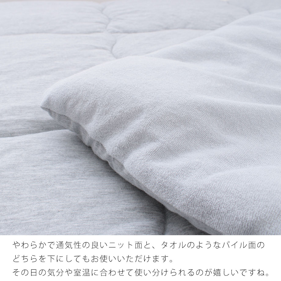 両面使えていいです敷きパットシーツとお揃いで購入しました。柔らかな肌触りとタオル生地と選べてよかったです。ダブルサイズもあるといいなーと思いました。