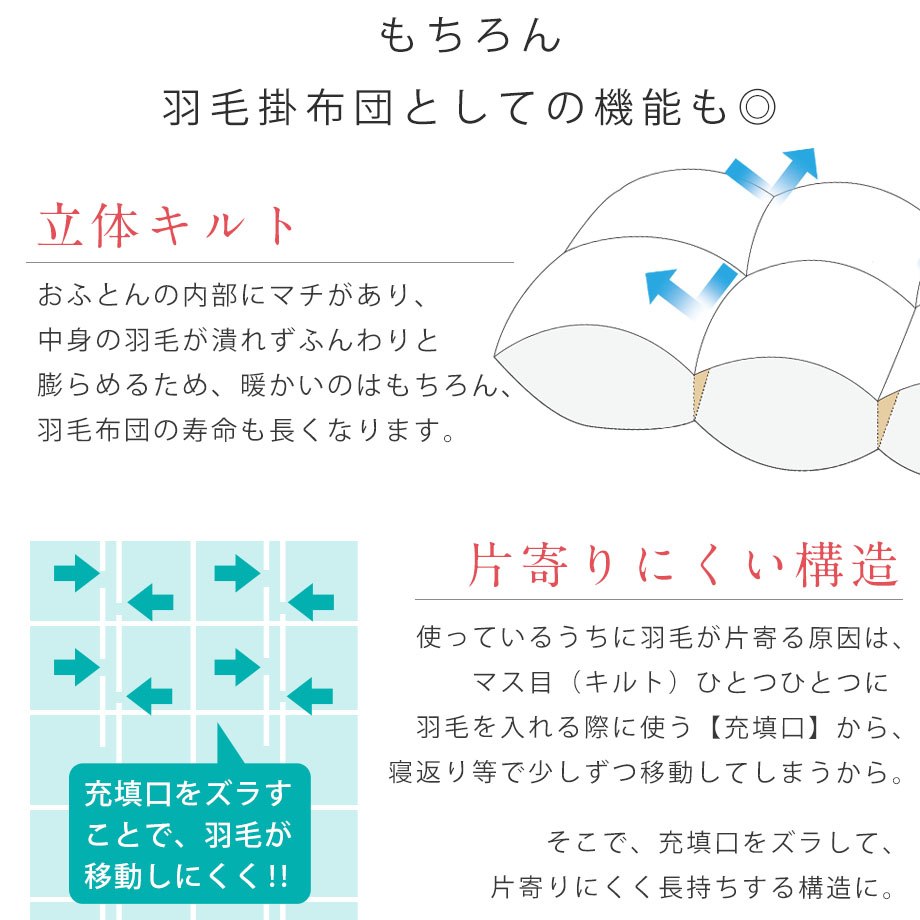キルト/ 立体ユニステークキルト(羽毛の片寄りにくいキルト)