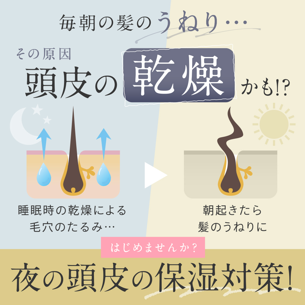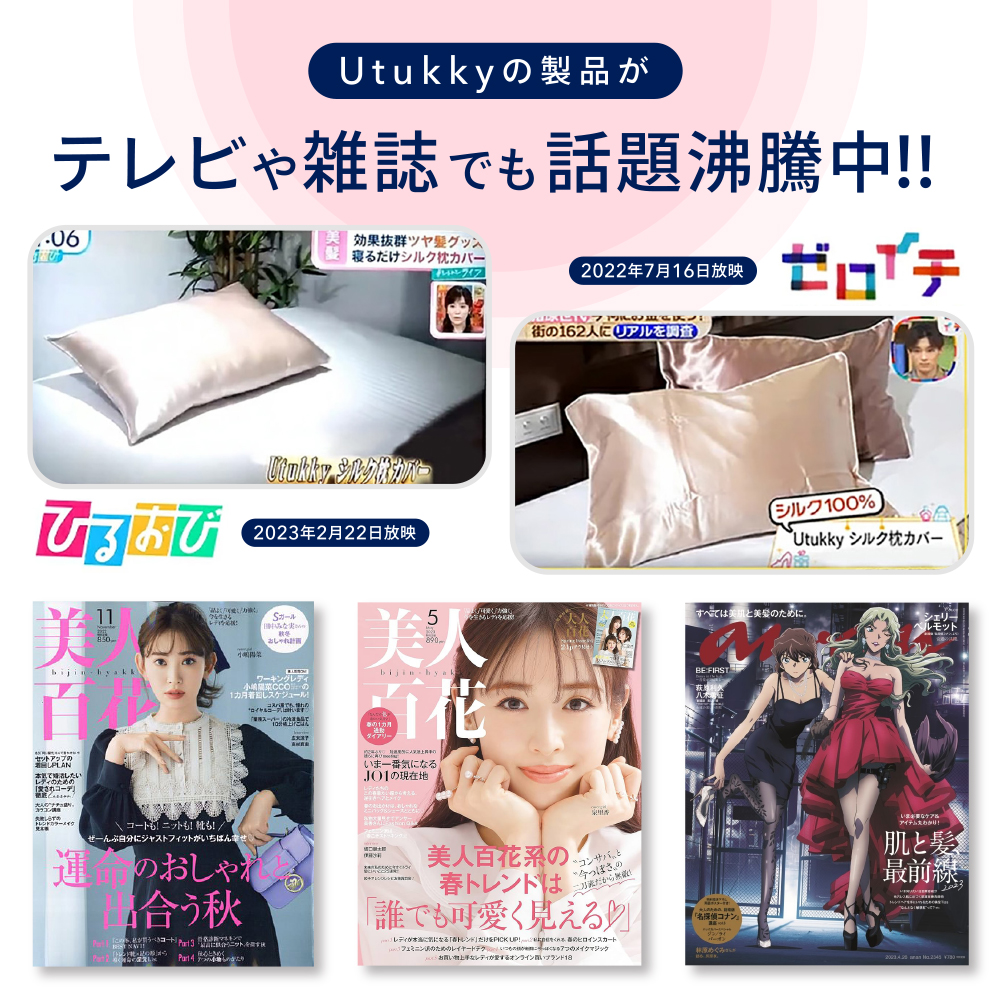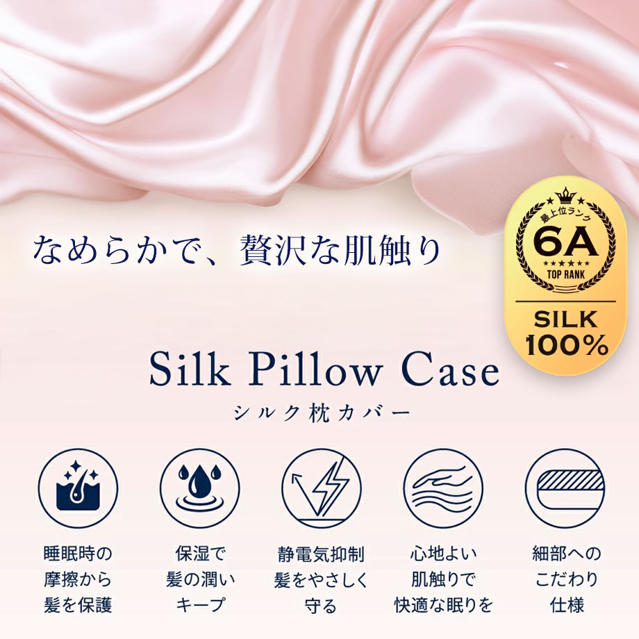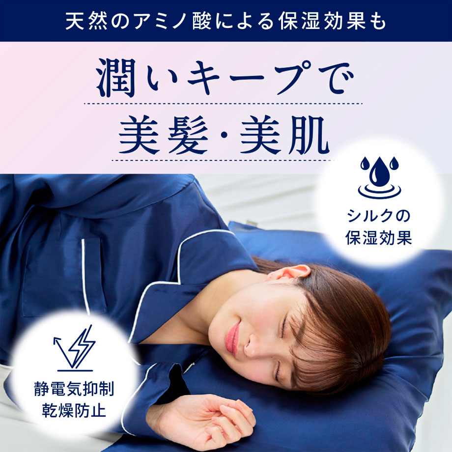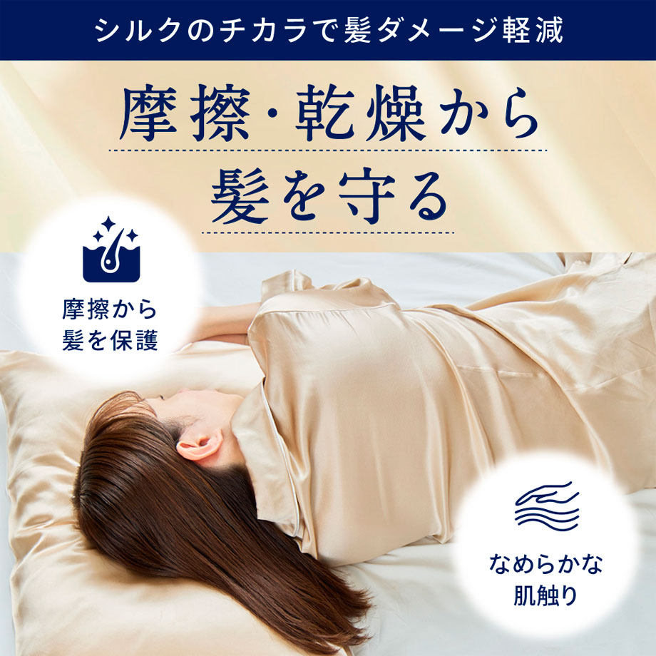 シルクのなめらかな表面は髪の摩擦ダメージを減らし、寝ぐせや切れ毛を防ぎます。