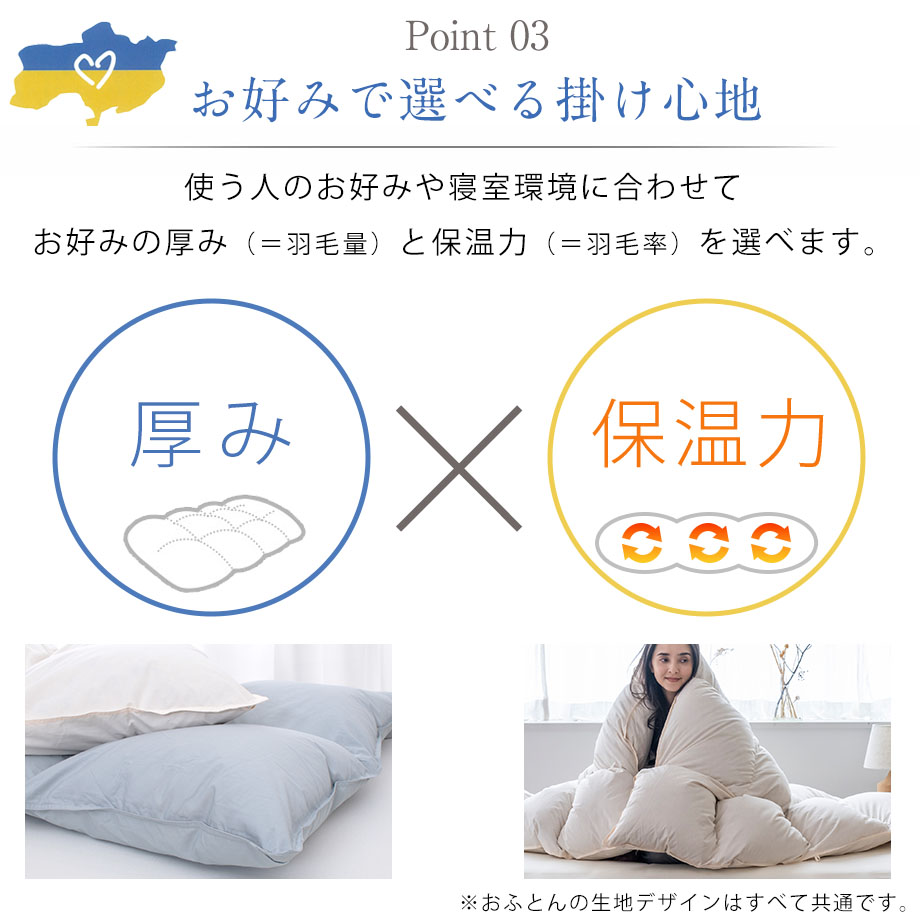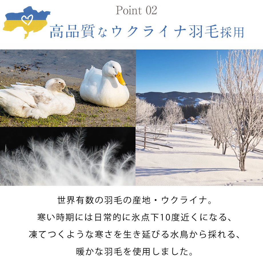 詰め物:ウクライナ産グレー(シルバー)ダックダウン、スモールフェザー(配合率はお選びいただいたモデルにより異なります)