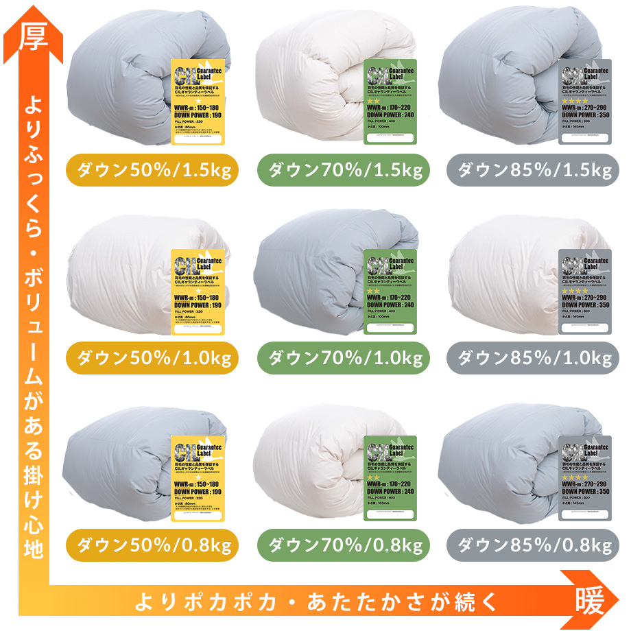※本商品は圧縮梱包してお届けします。お手元に届きましたら、即開封しパタパタと空気を入れて下さい。羽毛本来の性能がよみがえります。
