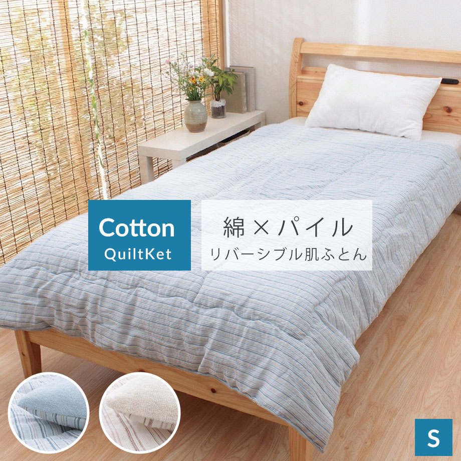 綿しじら×パイル キルトケット シングル リバーシブル 肌掛け 綿サッカー
