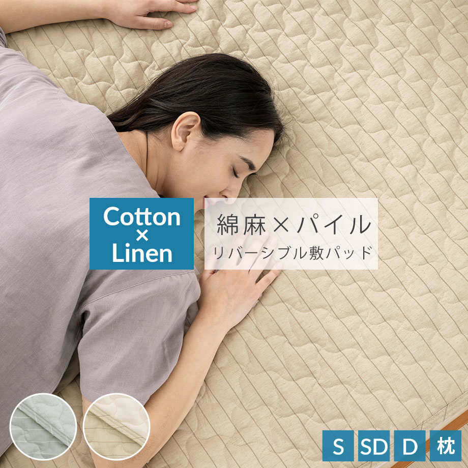麻×綿 敷きパッド シングル セミダブル ダブル 枕パッド リバーシブル