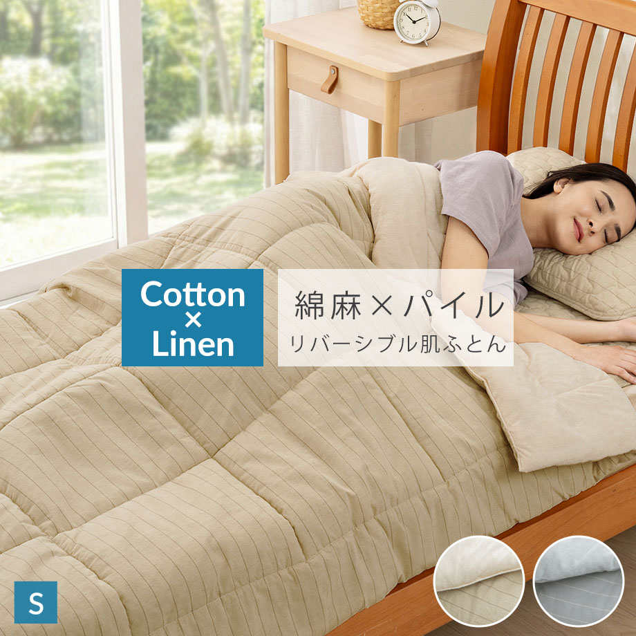 麻×綿 パイル キルトケット シングル 肌掛け布団 薄掛け布団 リバーシブル