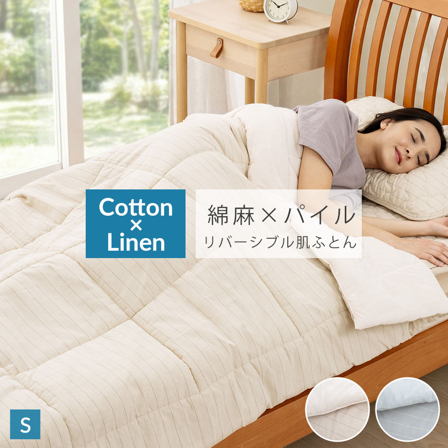 麻×綿 パイル キルトケット シングル 肌掛け布団 薄掛け布団 リバーシブル